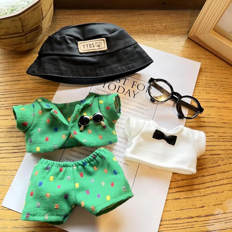 Unique and Practical Accessories: The cool jacket suit, adorable fisherman hat and mordern glasses decoration in this Labubu accessories set make you feel relaxed and happy. It bring you a nice mood every day.